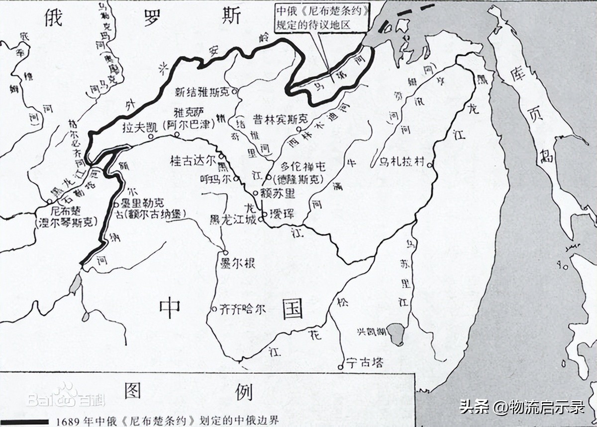 《尼布楚条约》划定的中俄边界示意图(图片来自网络,侵删)