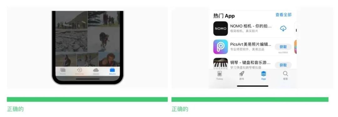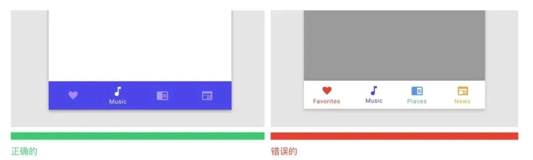 iOS 的设计规范中对标签栏的定义原则之一是,确保标签栏在视觉和交互上保持一致和平衡。