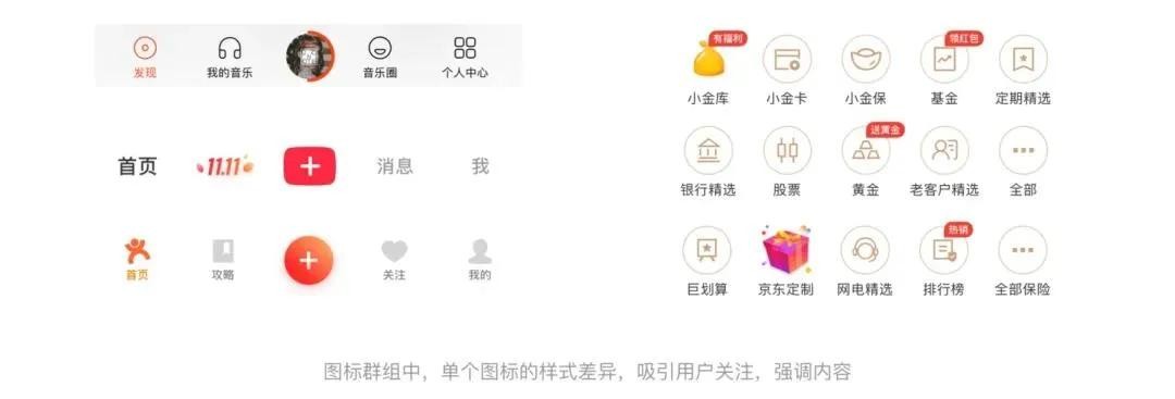 当在相似性的元素中,如果想凸显其中一个元素,那么就用不一样的视觉来呈现,以达到凸显效果的目的。强烈的对比性使其他相似元素显得平庸,而吸引了用户注意力。