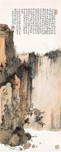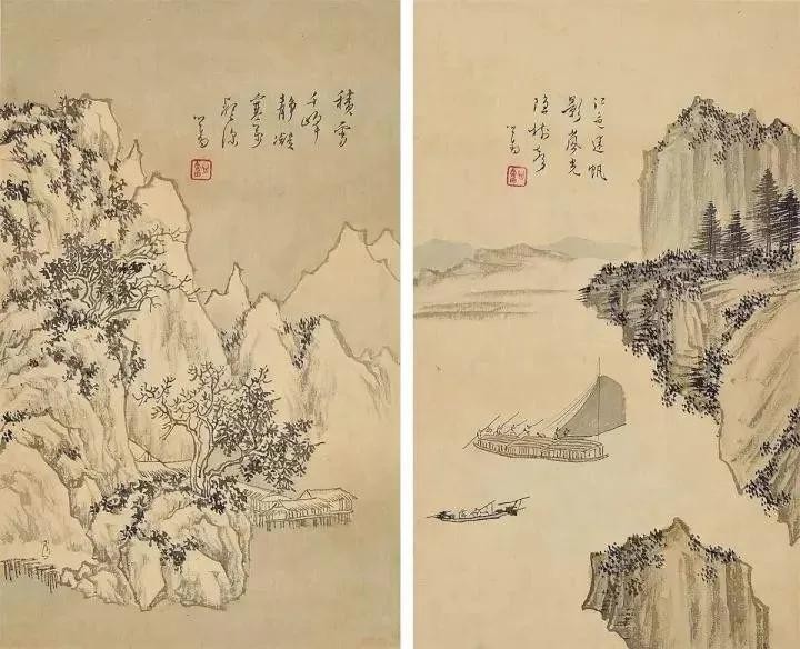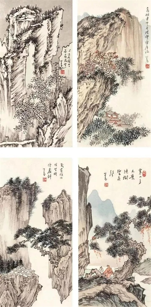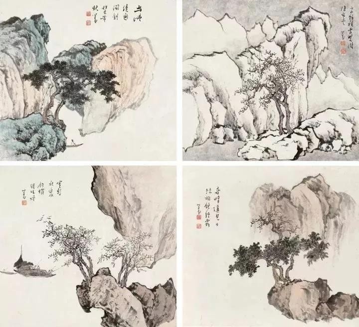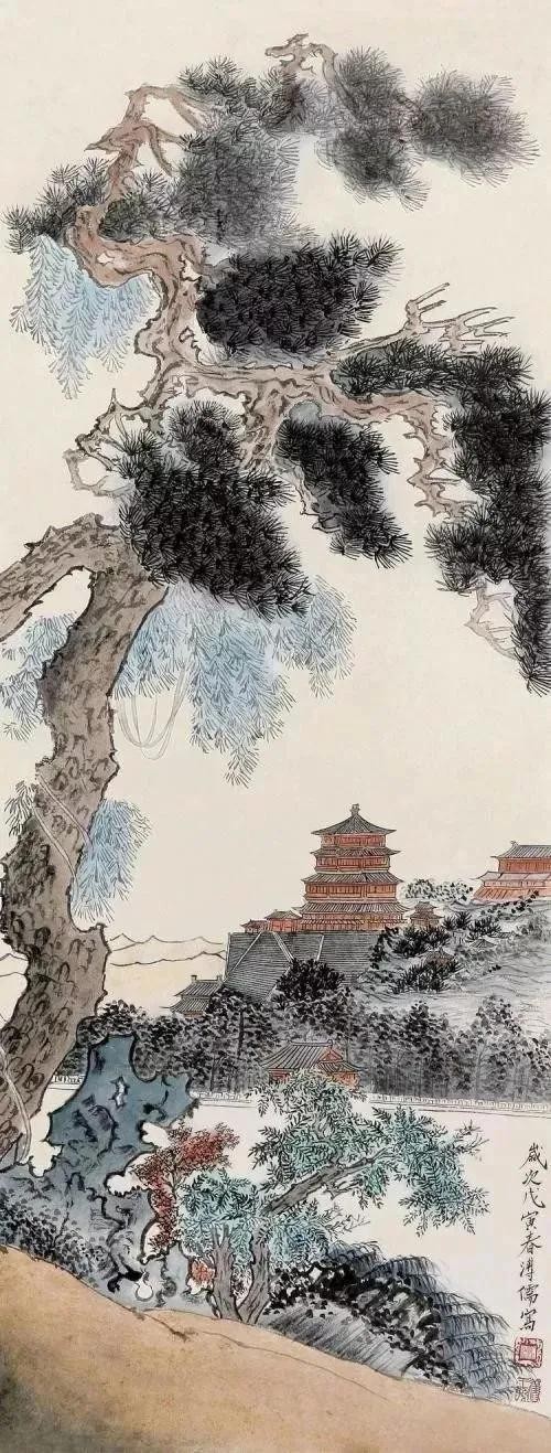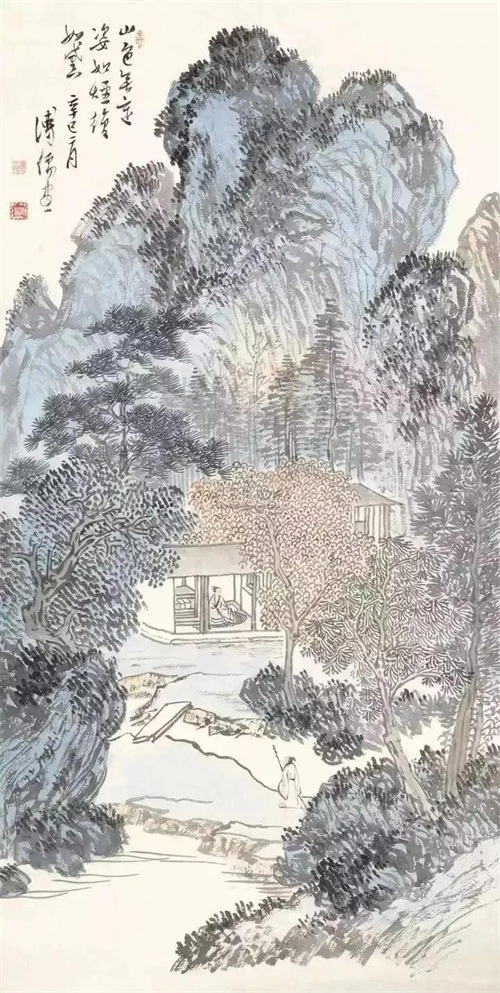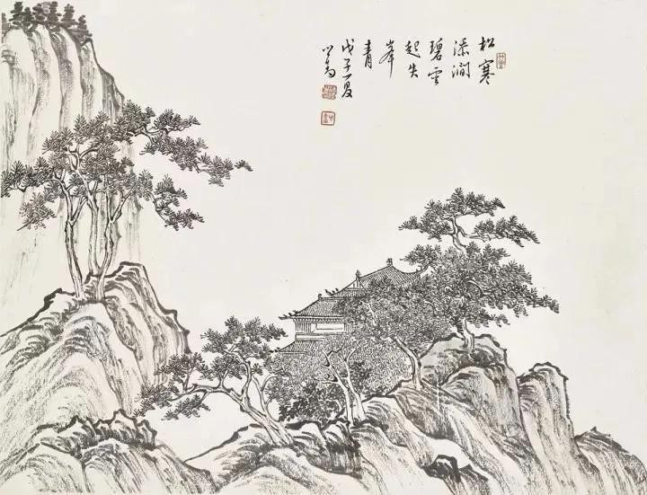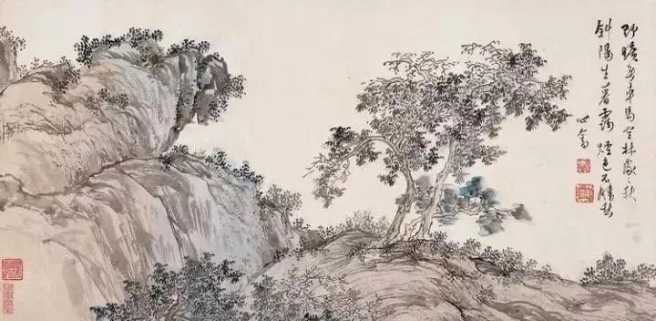 他曾经收藏一件明代早期佚名画家的山水手卷,细丽雅健,风神俊朗,全是北宗家法,一种大气清新的感觉满布画面,溥心畲学习了此卷的笔法,因此他的用笔挺健劲秀,真所谓铁划银钩,将北宗这一路刚劲的笔法──斧劈皴的表现特质阐发无馀,并兼有一种秀丽典雅的风格,再现了古人的画意精神。
