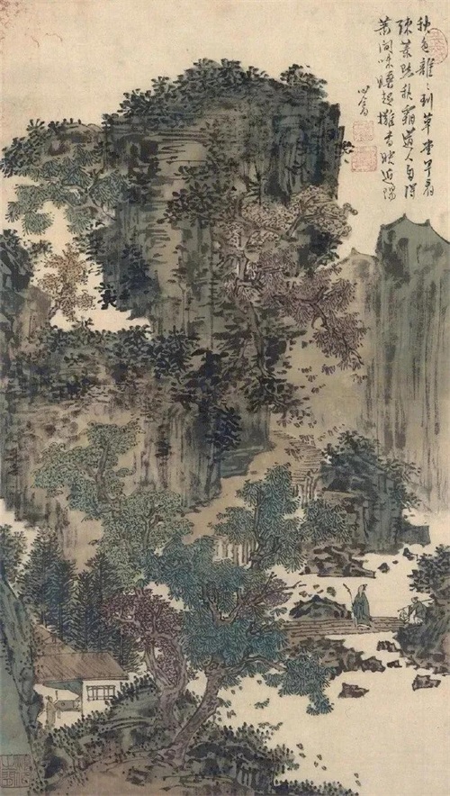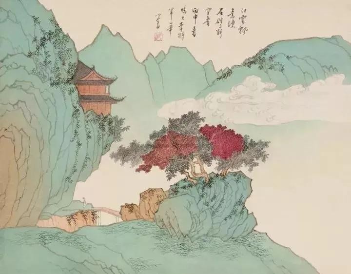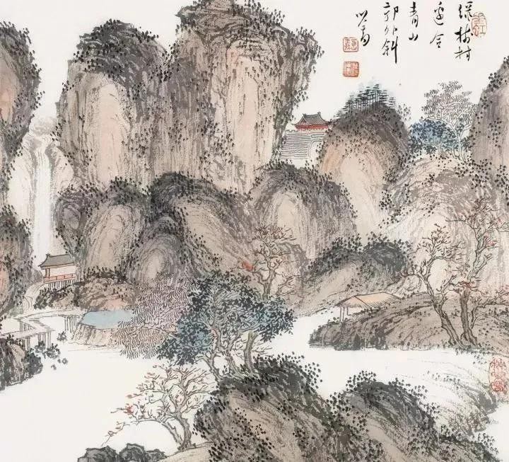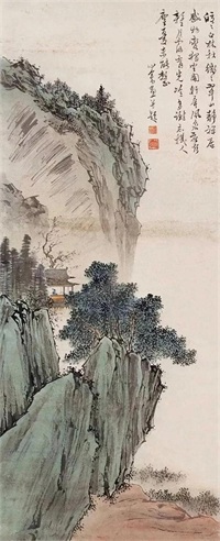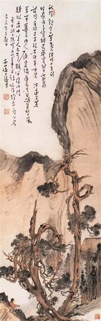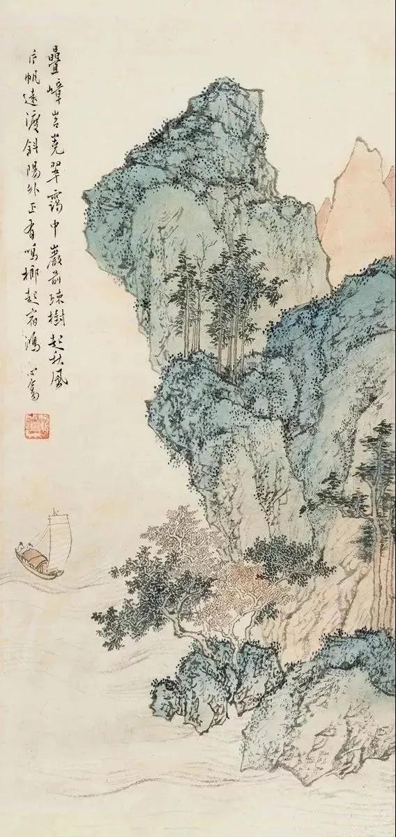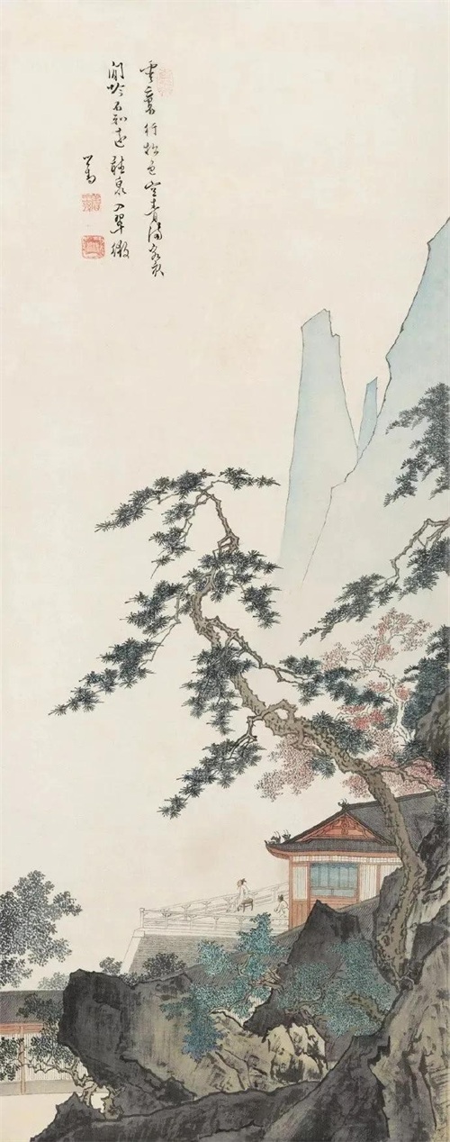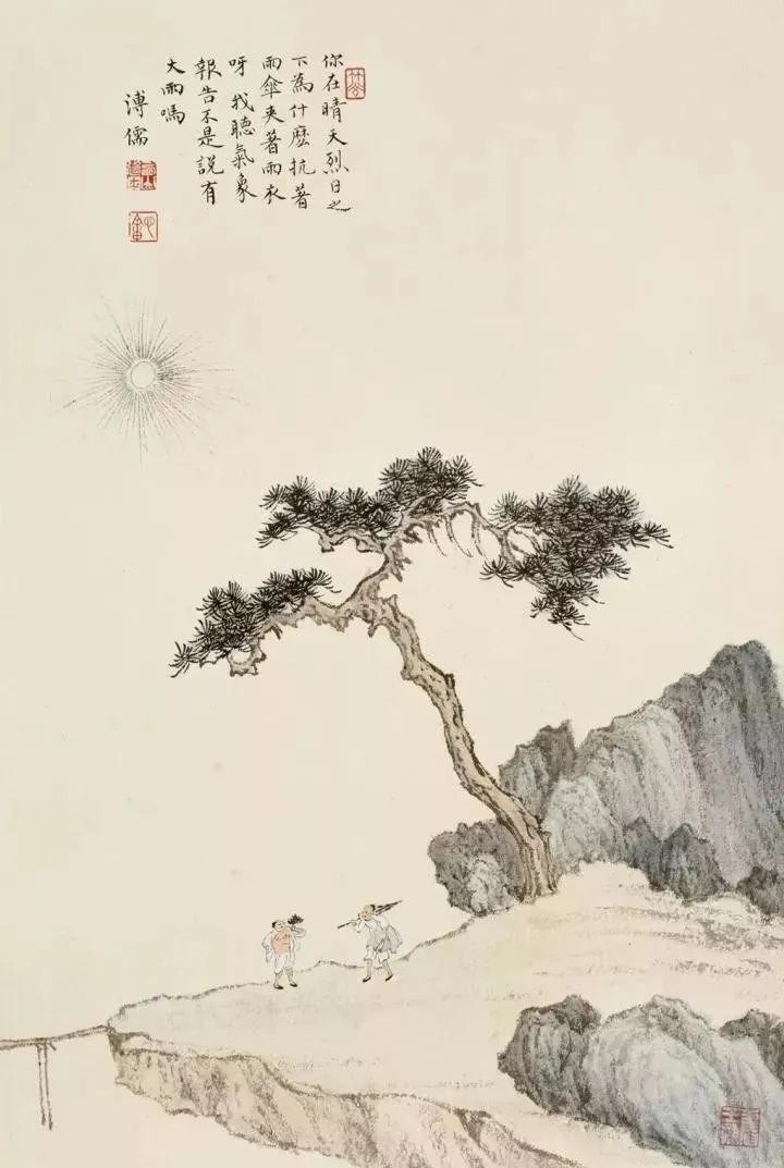 他曾经收藏一件明代早期佚名画家的山水手卷,细丽雅健,风神俊朗,全是北宗家法,一种大气清新的感觉满布画面,溥心畲学习了此卷的笔法,因此他的用笔挺健劲秀,真所谓铁划银钩,将北宗这一路刚劲的笔法──斧劈皴的表现特质阐发无馀,并兼有一种秀丽典雅的风格,再现了古人的画意精神。
