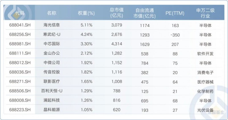 指数行业分布与科创板全市场整体水平基本一致,半导体、医疗器械、软件和光伏等行业数量和权重占比较高,全面覆盖了科技产业链的多个关键环节,并且广泛涉猎众多细分领域。