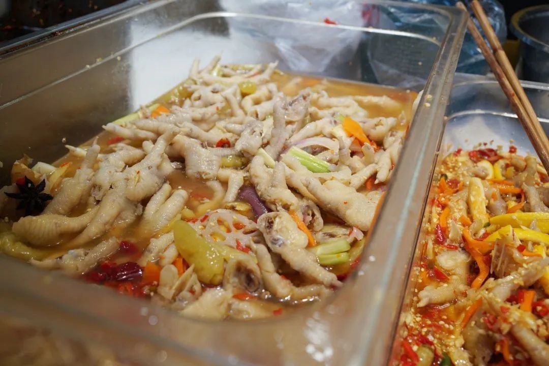 既有英子油炸、喜爪大牌档、烤骨队、新九记市井老火锅、乐山八婆麻辣烫等大餐硬菜,也有牛华九九豆腐脑、竹筒蒸肉店、阿郎冒菜、牛肉面等家常中餐,还有小丸子の冰铺、囍孃醪糟这类甜品小食。