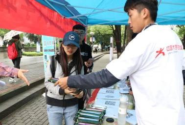 在南樟,校网通的通讯员们正在耐心介绍中国大学生在线,给同学们推荐适合的参与方式。