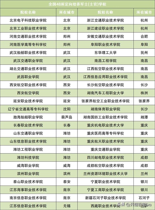 目前我国定向士官院校共计48所,且都是在专科提前批特殊专业进行录取。