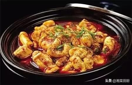 3、锅里放红油烧热,下姜米、蒜米、豆瓣酱、豆豉、辣椒面先炒香,掺鲜汤烧开后,放入豆腐和牛脊髓煮制,等用湿淀粉收浓芡汁后,放入牛肉粒并淋花椒油、香油,出锅装入烧烫的砂煲,最后撒入花椒面和蒜苗花,即成。