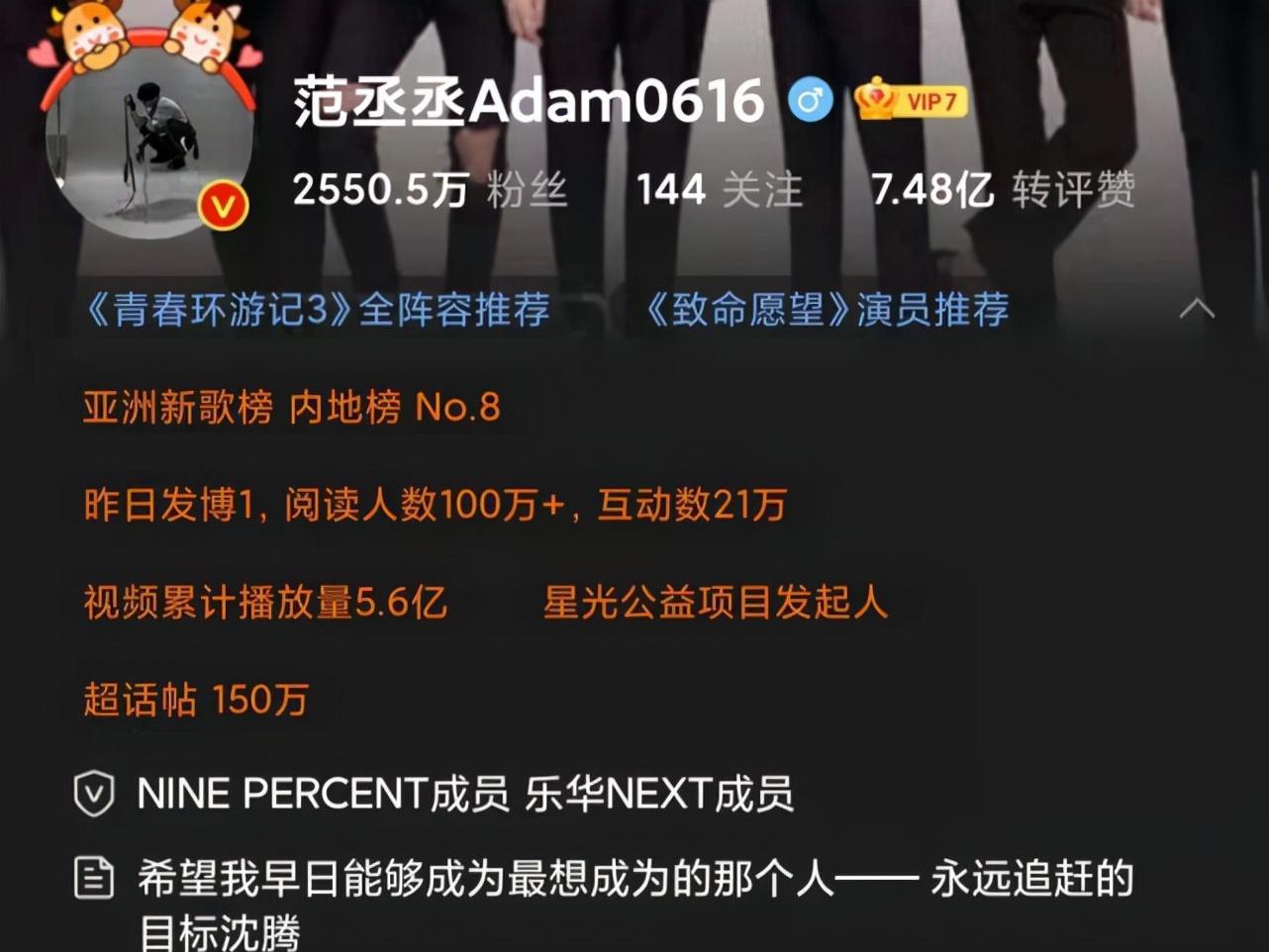 谁能想到他的微博简介写着“拒绝僵尸粉!”
