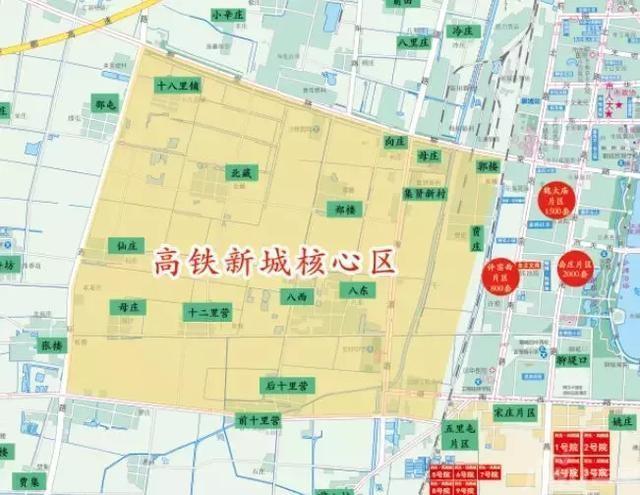 高铁新城规划范围为:京九铁路以西部分、闫寺街道、道口铺街道、候营镇,面积约为186平方公里;高铁新城核心区范围为:西至西环路、东至京九铁路、北至聊堂路、南至凤城路,面积约21平方公里。