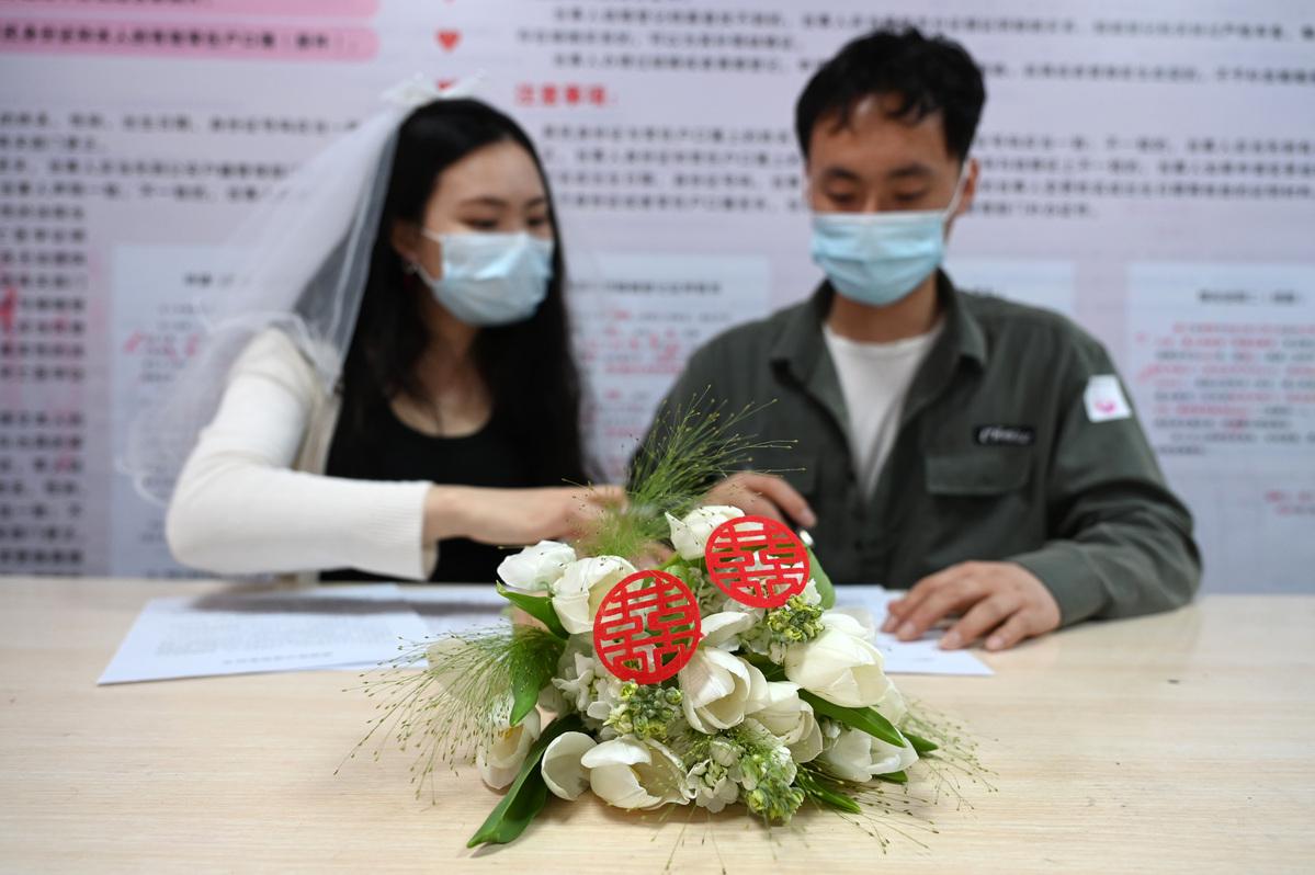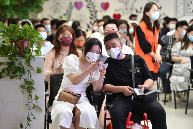 5月20日,江苏省南京市建邺区民政局婚姻登记处,新人等待办理登记手续。方东旭 摄