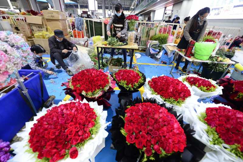 5月16日,云南昆明斗南花卉市场,商家提前为“5·20”备货。龙宇丹 摄