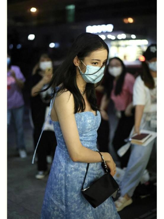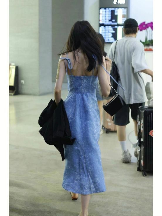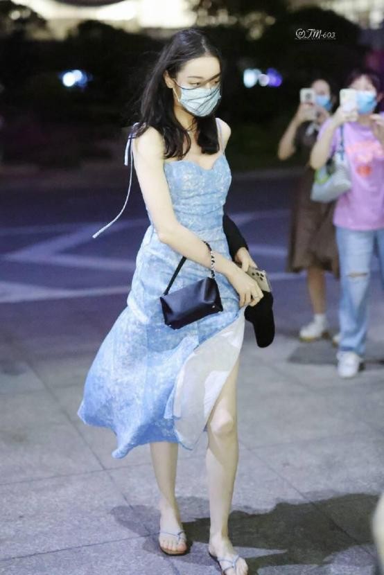 迪丽热巴这条吊带连衣裙,就是带一些灰色调的蓝色加上白色碎花,既在视觉效果上给人以清新自然的感觉,同时其色调也让整体看起来没有那么强烈的侵略性,对于整体温柔的形象气质也有着相当好的塑造作用。