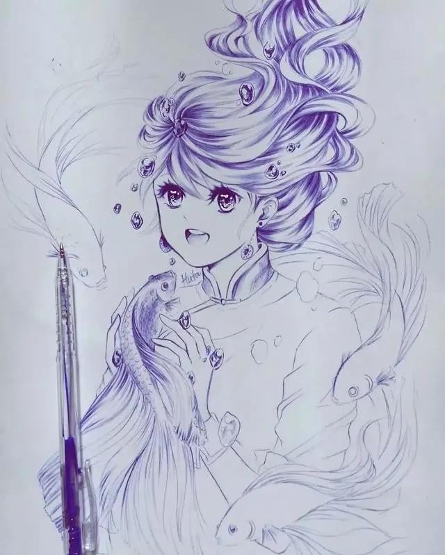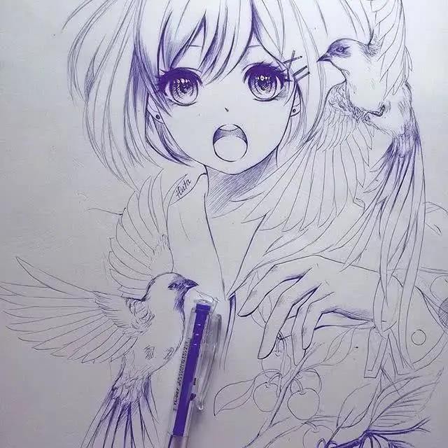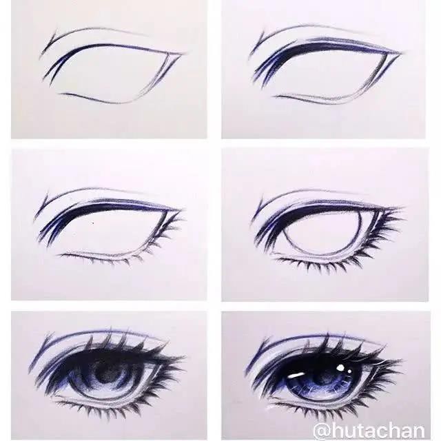 圆珠笔表达的效果也是值得称赞。先打形,画好眼的轮廓;找准瞳孔的位置涂抹,眼睫毛大致形画好;根据光源,画出虹膜的深浅变化;完善睫毛,多用细线勾勒,面积可以扩大,让眼睫毛看起来很长很密,使眼睛炯炯有神,靠近瞳孔的位置点上高光,虹膜下部分处理好反光,加深眼珠边缘线,完成。