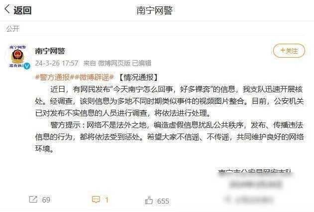 南宁辟谣出现大量裸奔人士 信息为多地不同时期类似事件的视频图