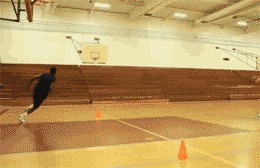 三步接射训练:从内线跑向三分线,在三分线迅速调整脚步和姿势接球,然后投篮出手,左右两边各练习2组,每组10个
