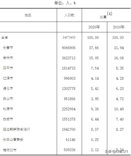 根据第七次全国人口普查结果,吉林省总人口为2407.35万人,与2010年第六次全国人口普查相比,减少337.94万人,10年间减少12.31%,年均减少1.31个百分点。