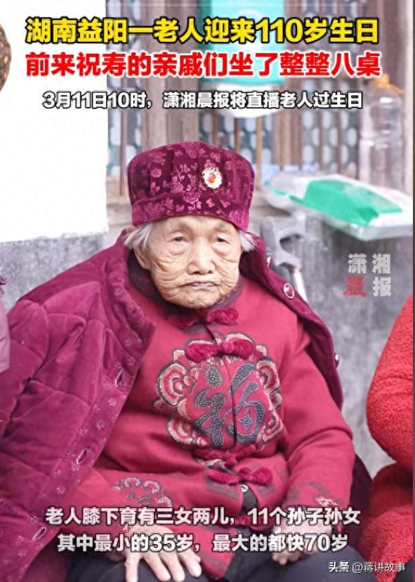 3 月 10 日,在湖南益阳的莲盆嘴村,傅莫秀老人迎来了她的 110 岁生日。五代同堂的大家庭,最大的孙子都快 70 岁了,真是福寿双全!