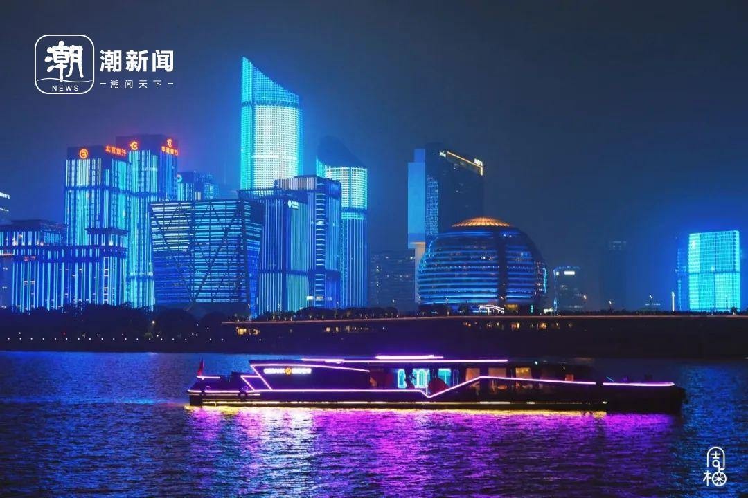 “游客朋友们,前方一颗金色的球体印入眼帘,它正是……”,伴随着游轮的前行,船舱内双语播报的游览词,带你沉浸式感受钱江两岸的国际化风光。