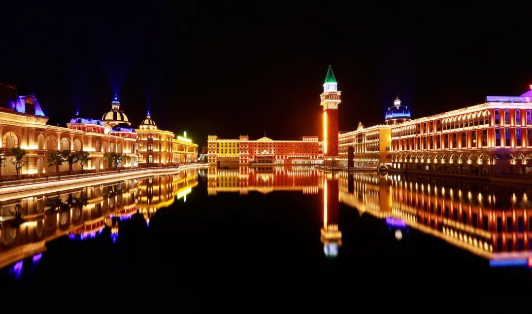 飞马水城以威尼斯水城为原型,园区内随处可见的欧式宫殿建筑群互相映衬,湖天一色,点缀其间的中式元素融于欧陆风情之中,雍容典雅又不失传统的东方神韵。夜晚,水城又变身流光溢彩的魔幻城堡世界,素有“水上法拉利”之称的意大利“贡多拉游船”穿梭其间,让人仿佛置身于欧洲浪漫童话世界中。