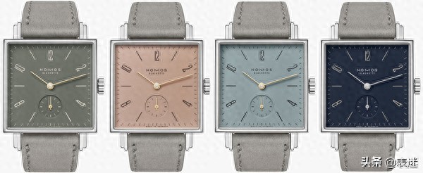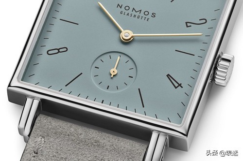 正方形的表盘,一如既往的简约风格,加之淡雅独特的配色,演绎出清新脱俗的时尚。正方形表壳由精钢打造,尺寸29.5mm,厚度6.3mm。小三针布局表盘是 NOMOS 一贯的极简主义设计,拉长的时标搭配纤细的指针。