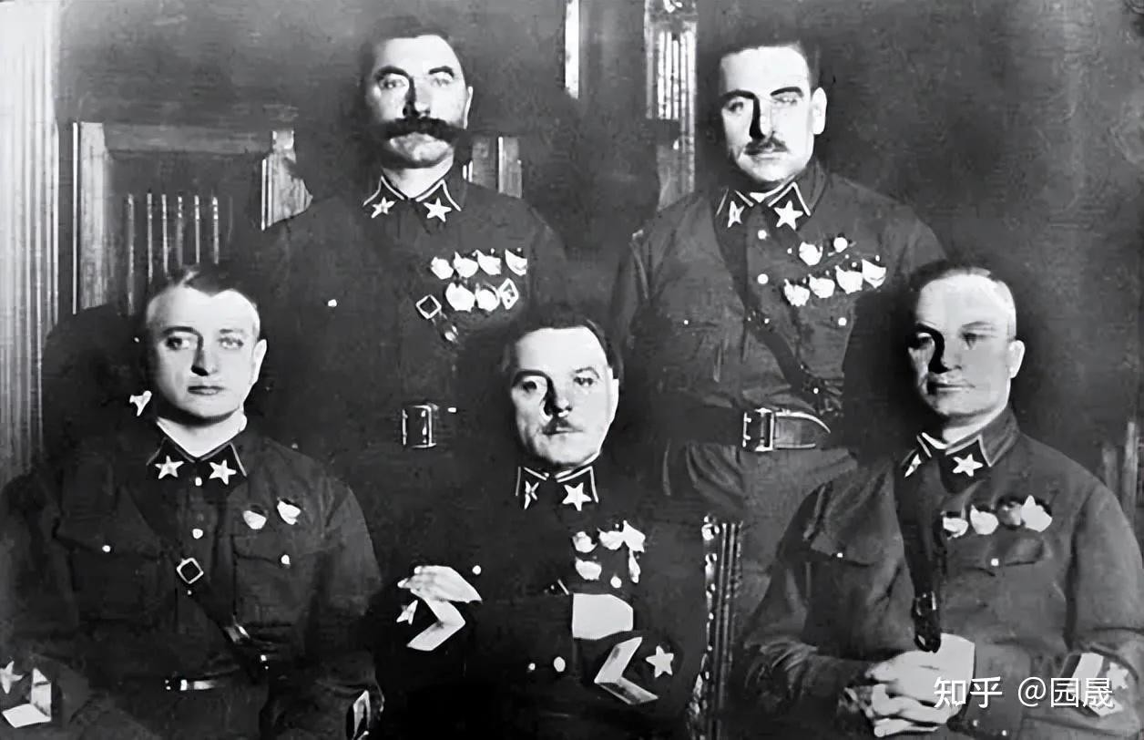 图哈切夫斯基(坐者左一)叶戈罗夫(坐者右一)布琼尼(站者左)图片来自网络
