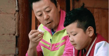 为了避免被爸爸批评,强行塞一个鸡蛋被一秒噎住的郭石头: