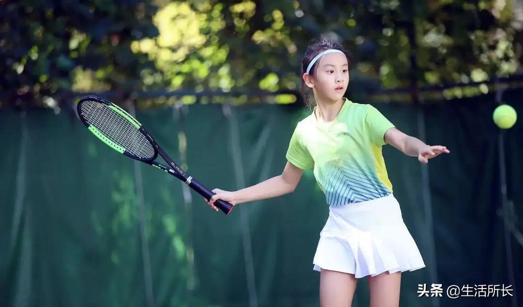 热爱网球的她,在专业教练的带领下,挥拍也更有力量了。