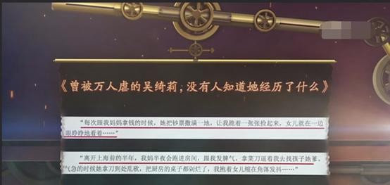 一旦女儿不听从她的话,就会体罚女儿。她会让吴卓林举着《辞海》罚站3个小时,甚至用皮带抽她大腿。