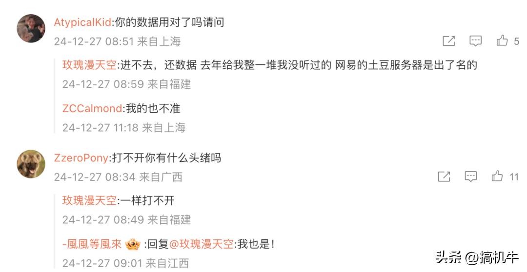 而在网易云音乐官方微博下的评论也有网友质疑年度报告的准确性,同时还有网友表示打不开的问题。