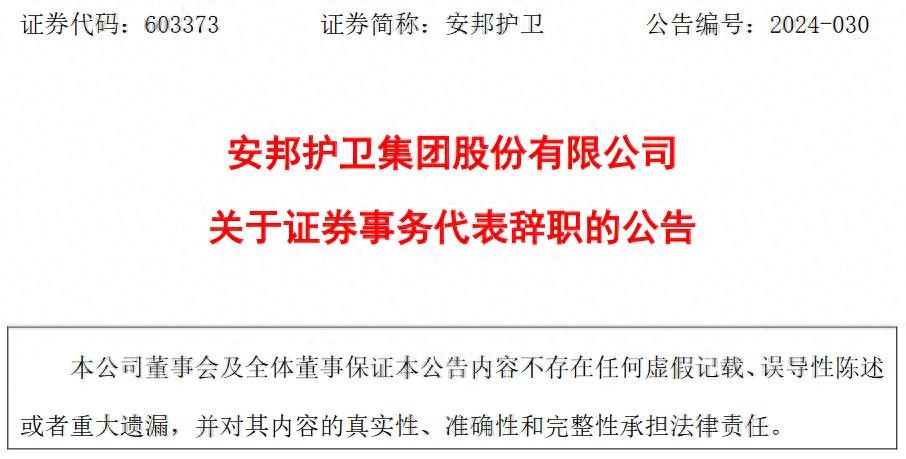 安邦护卫集团股份有限公司证券事务代表赵倩辞职