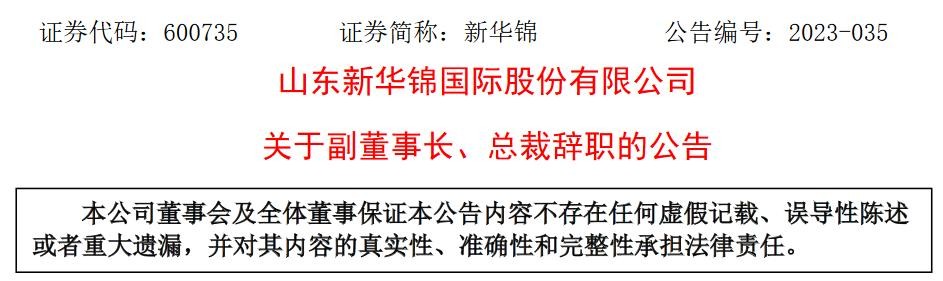 新华锦(600735)于8月25日发布晚间公告称,山东新华锦国际股份有限公司(以下简称“公司”)董事会于近日收到公司副董事长、总裁盛强女士的辞职报告,盛强女士因到退休年龄,申请辞去公司副董事长、董事、总裁、董事会审计委员会委员、董事会薪酬与考核委员会委员等职务,辞去前述职务后,盛强女士将不再担任公司任何职务。