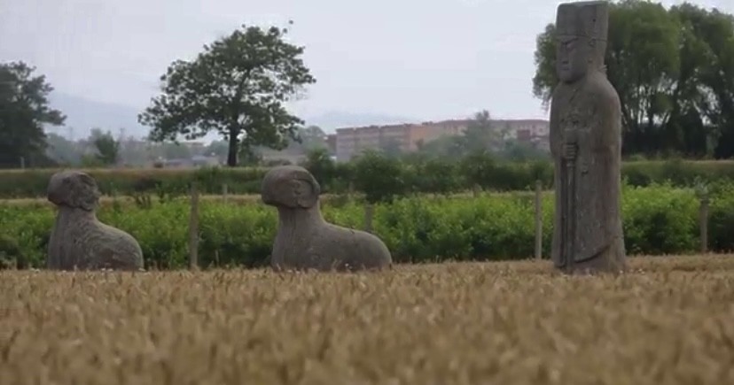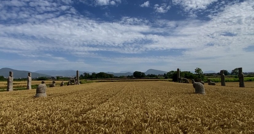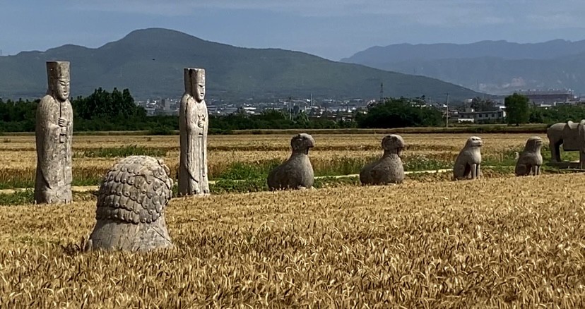 近日,位于巩义市的宋陵区域迎来麦收季。宋陵总面积约189平方公里,一些石像生矗立田间。