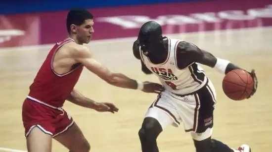 真正让彼得洛维奇一战成名的其实是92年巴塞罗那奥运会。由于上一个奥运周期,美国国家队,屡次被东欧球队击败。大卫斯特恩压力山大,打算启用NBA一线超巨找回颜面,于是梦一呼之欲出。这支以乔丹为首的球队阵容奢华,几乎全员名人堂,战力爆表,除了有伤即将退役的大鸟和大学生莱特纳,都在当打之年。