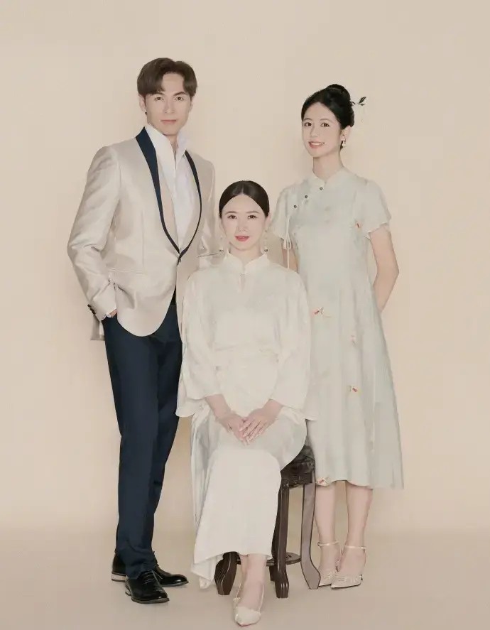 翁虹一家三口全家福曝光,女儿小水晶穿旗袍气质清秀