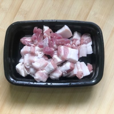 2、五花肉切1cm厚度的块