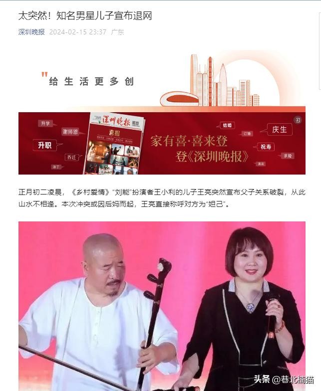 信源来自:深圳晚报 2024年2月15日 太突然!知名男星儿子宣布退网