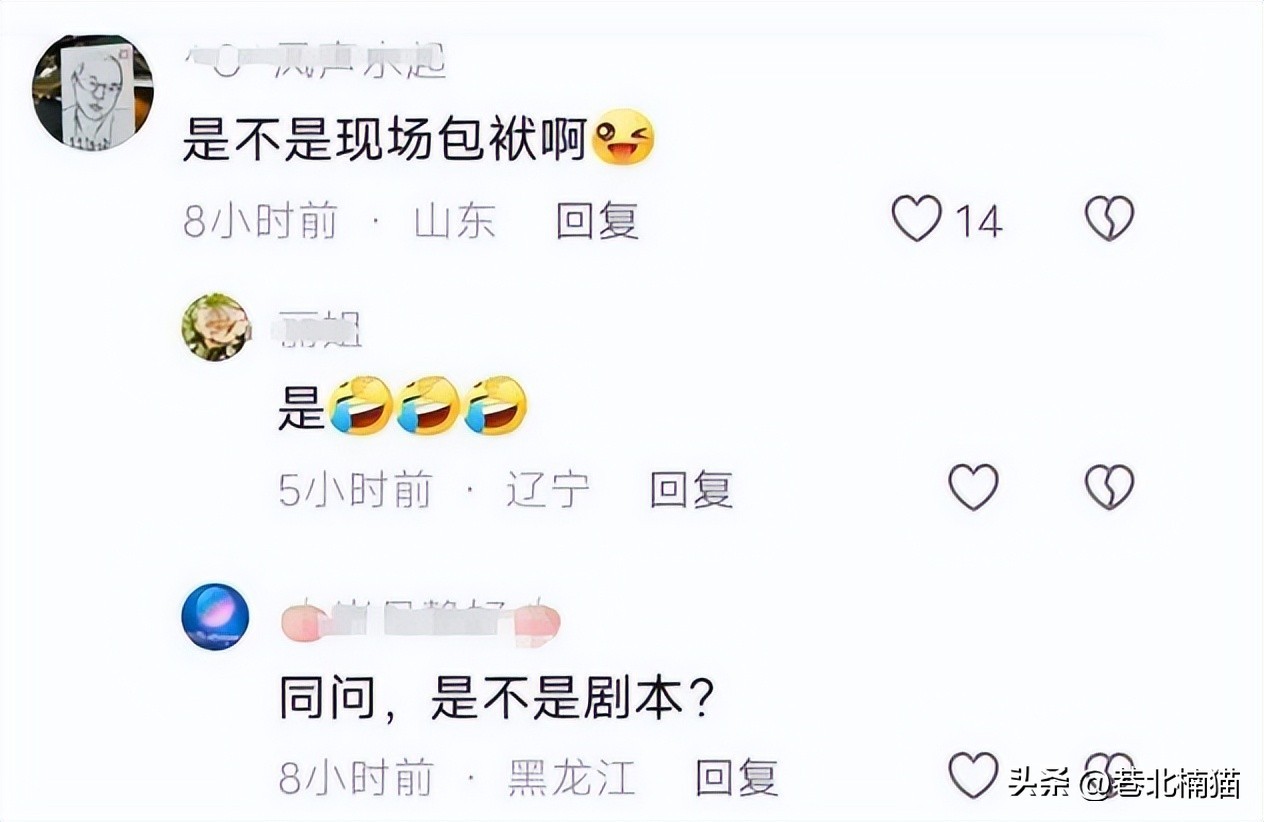 这个时候妻子却出来拦着他让他不要这么做,这一来一回让吃瓜群众觉得这是两人创造的剧本。