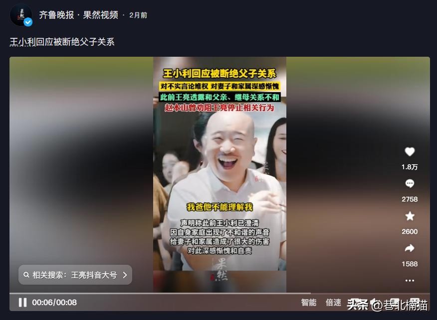 也许是看到父亲的回应,上头的王亮又再次开启直播,在直播中对着大家道歉。