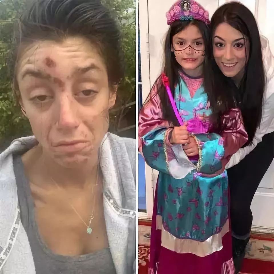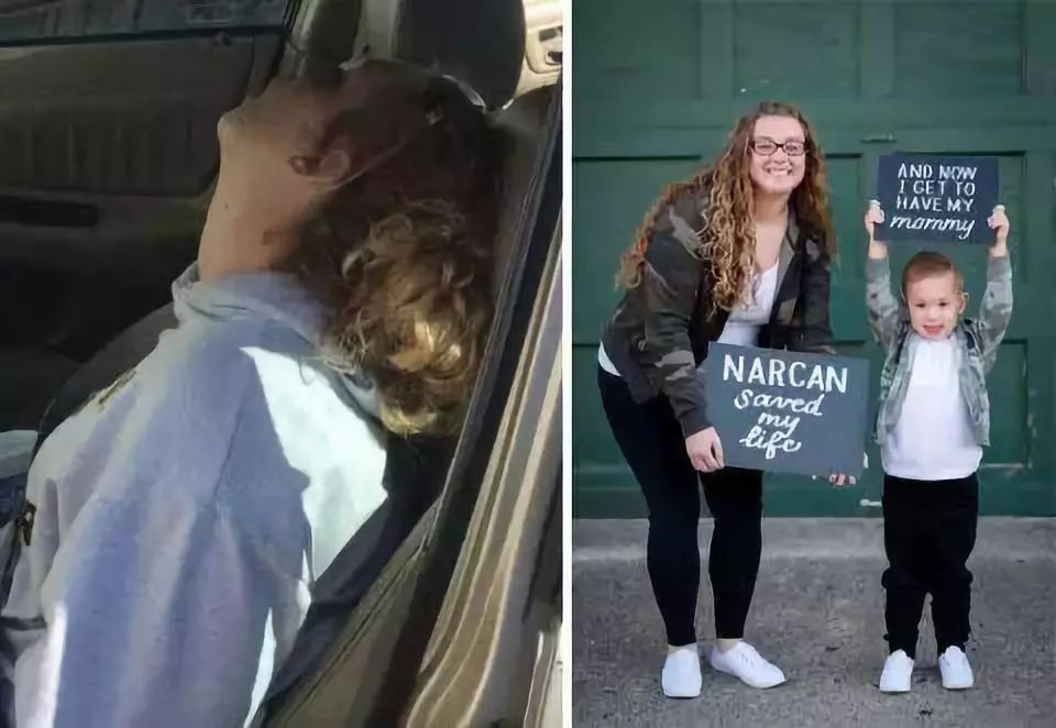 左边这张警察给我拍的照片,后来在网上传播,数百万人看到我吸毒过量的窘态。如今,我戒毒三年,我的儿子得到了他的“新妈妈”。
