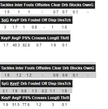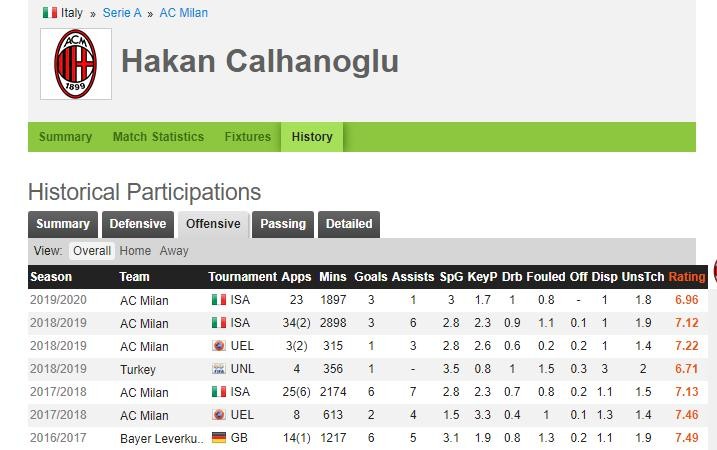 上图中最上面一排是防守数据,几乎和复制的差不多,可以说恰尔汗奥卢在防守端是一以贯之的。稍稍说一句,恰球王在药厂最后一个赛季,药厂的阵型变化很多,恰球王踢过左边锋、前腰、二前锋(类似442),而在本赛季米兰恰球王主要踢偏进攻的中前卫或者左边锋。相对而言,本赛季他在米兰参与防守的力度应该比药厂时期稍大,按说防守数据应该略高,但事实不是这样,说明恰球王的防守能力撑死了也就这个水平。