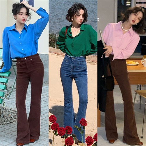 一、秋日衣橱必备喇叭裤,修身时髦又高级
