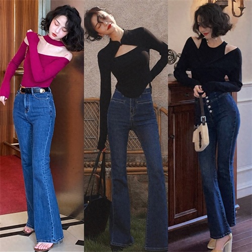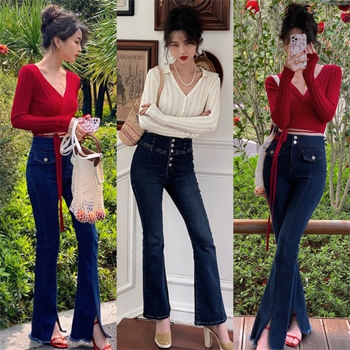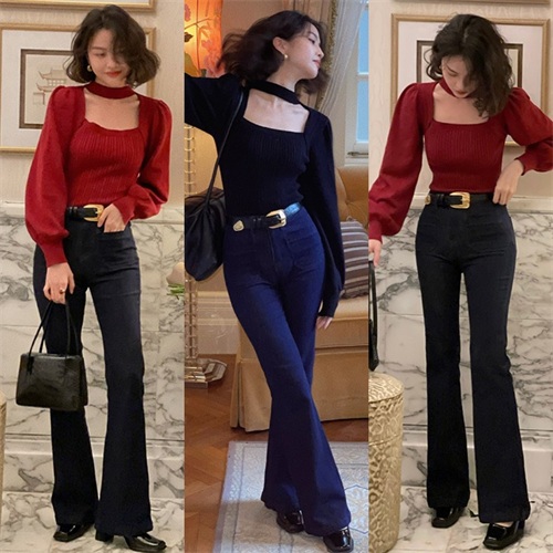 初秋的季节当然也不能错过针织衫来搭配喇叭裤,温柔软糯的针织上装搭配上复古优雅的喇叭裤,轻松穿出十足的女人味,不管是单穿还是搭配外套都是非常合适的选择。