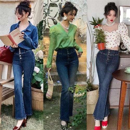 2)高腰喇叭裤