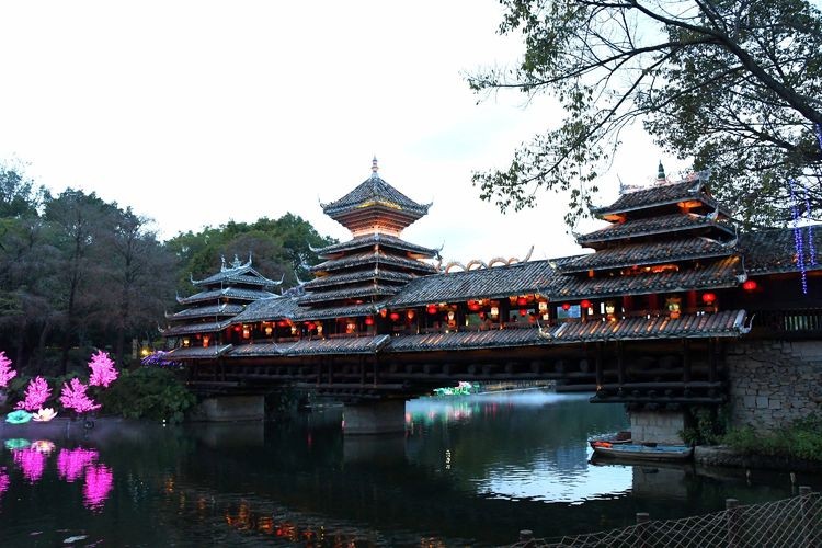 在【风雨桥】坐坐,感受侗族独特的长廊式的桥梁建筑。桥是铺设在溪流之上,专供过往行人歇息,避风避雨,因此得名“风雨桥”。又因侗族青年男女在此对歌、娱乐,故又称“花桥”。