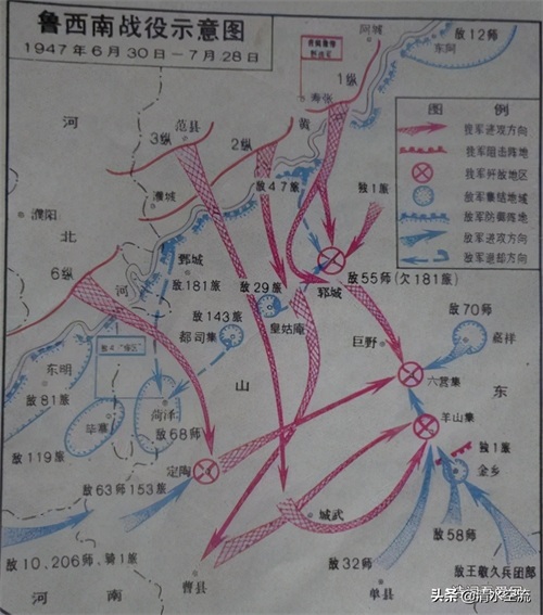 五,鲁西南战役:1947年6月30日 至7月28日。指挥:刘伯承,顾祝同