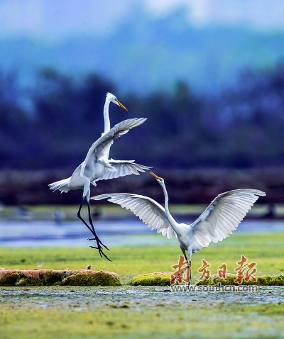 大白鹭展示“空中芭蕾”。