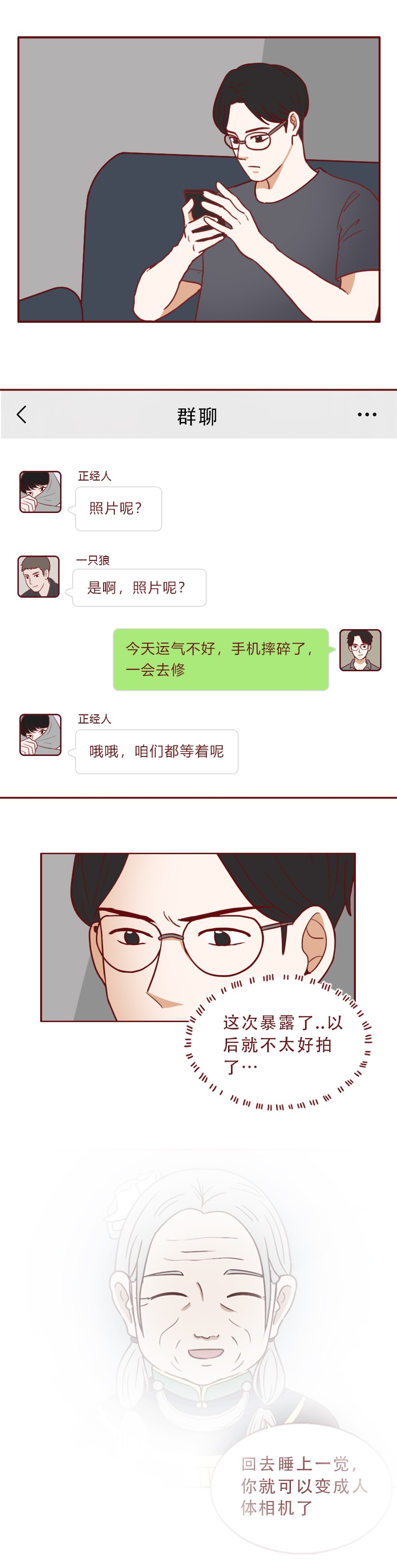 男主是一名“偷拍摄影师”,专门靠偷拍女生赚钱。在一次偷拍失败后,他遇到了白仙。白仙许了他一个特殊的能力。一觉醒来后,男主惊讶地发现自己变成了人体相机,再也不受机器的约束,可以尽情地偷拍女生,还不会被发现。可他却不知道,自己的后背也跟着长出了奇怪的花纹。