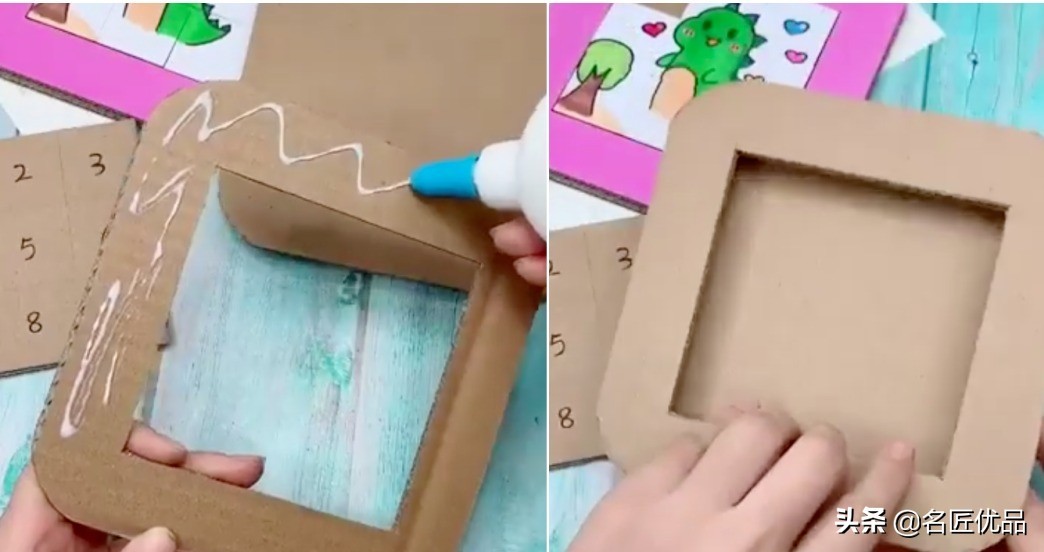 5.把九宫格的纸板裁剪为9个小格,放进框里就完成。