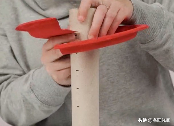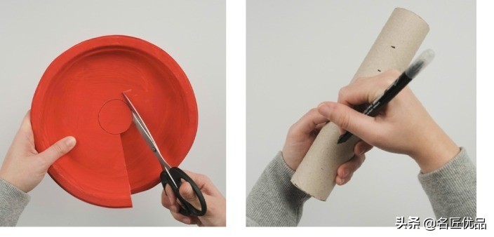 1.在纸盘剪一个卡位,然后在纸筒作来间距标记