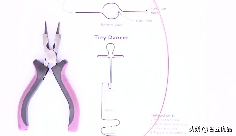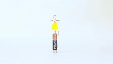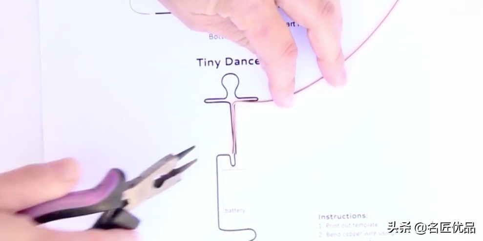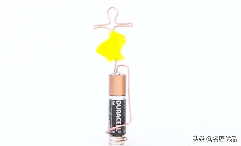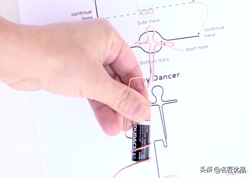 1.将铜丝跳舞者的样子,高度要配合干电池的大小