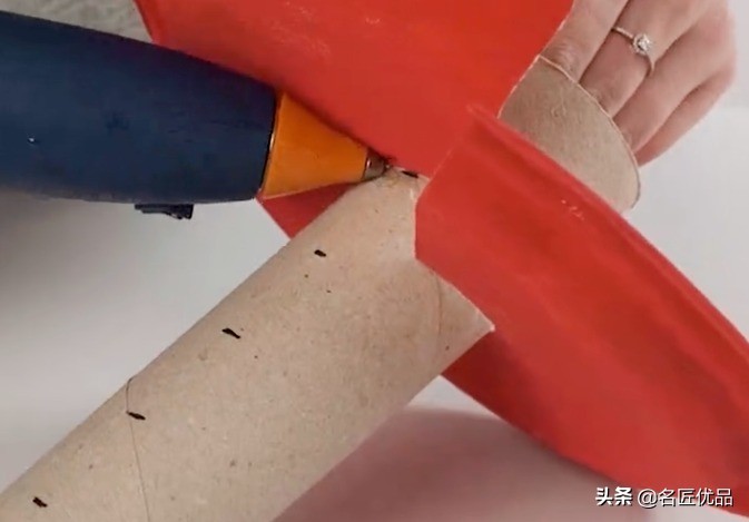 2.把纸盘卡进纸筒上,用热熔胶固定住